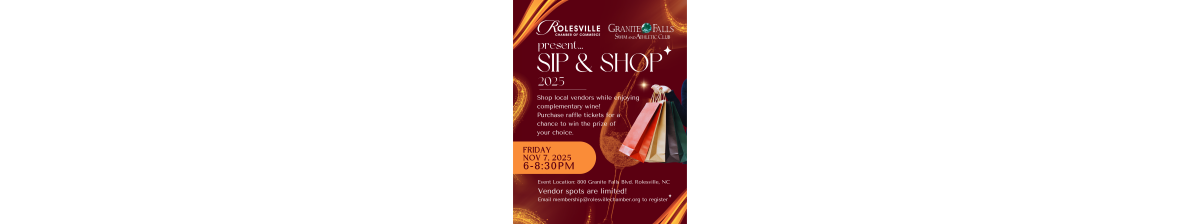 Enjoy shopping local vendors while sipping on complimentary wine! Enter to win a raffle prize from the vendor of your choice as each vendor will have their own prize entry.